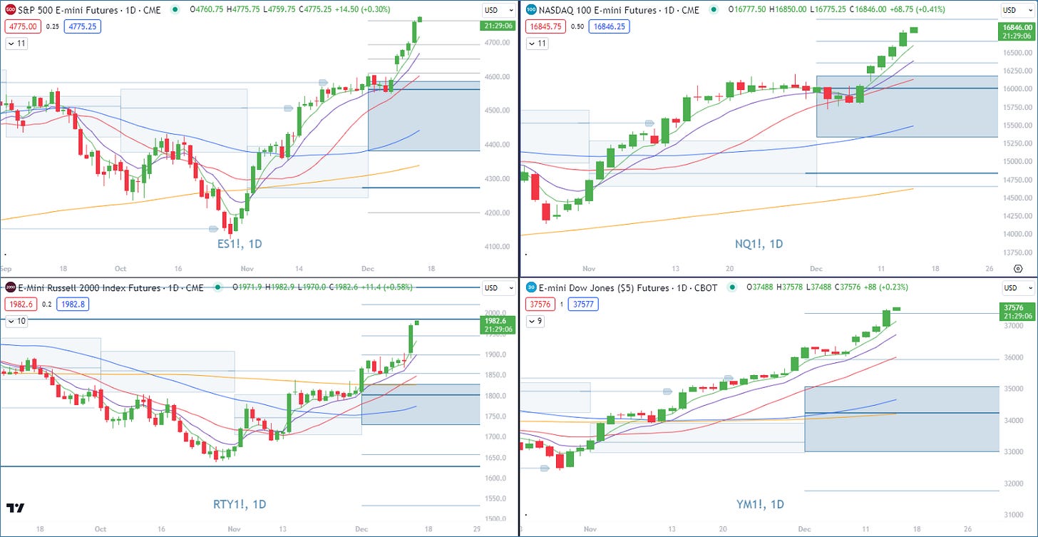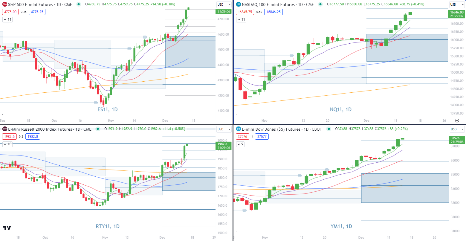 All indices are extended significantly away from their respective 5-day EMA’s.
