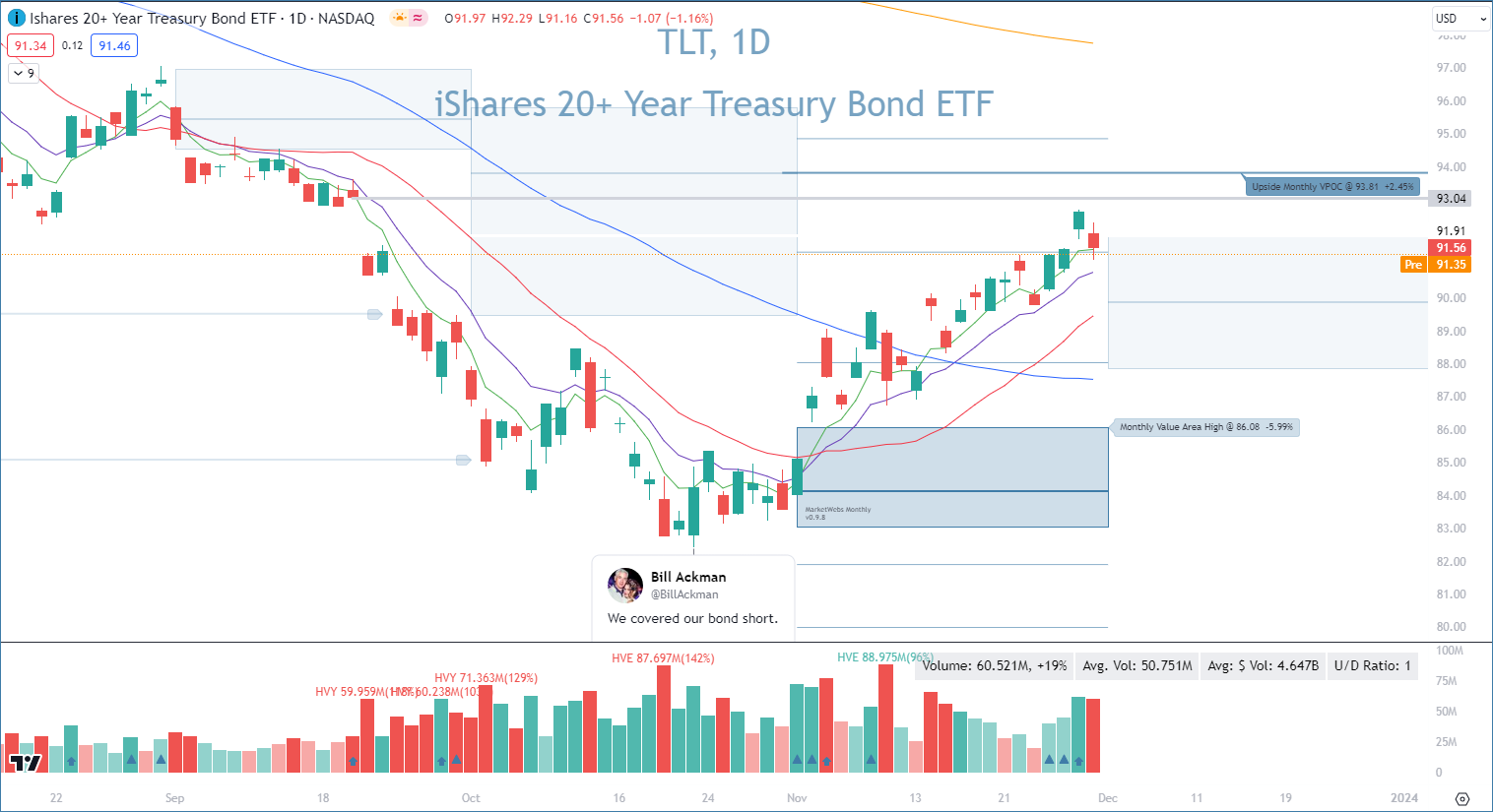 TLT continues to take two steps forward, one step back, and is fast approaching the 9/25 gap fill at $93.04👇