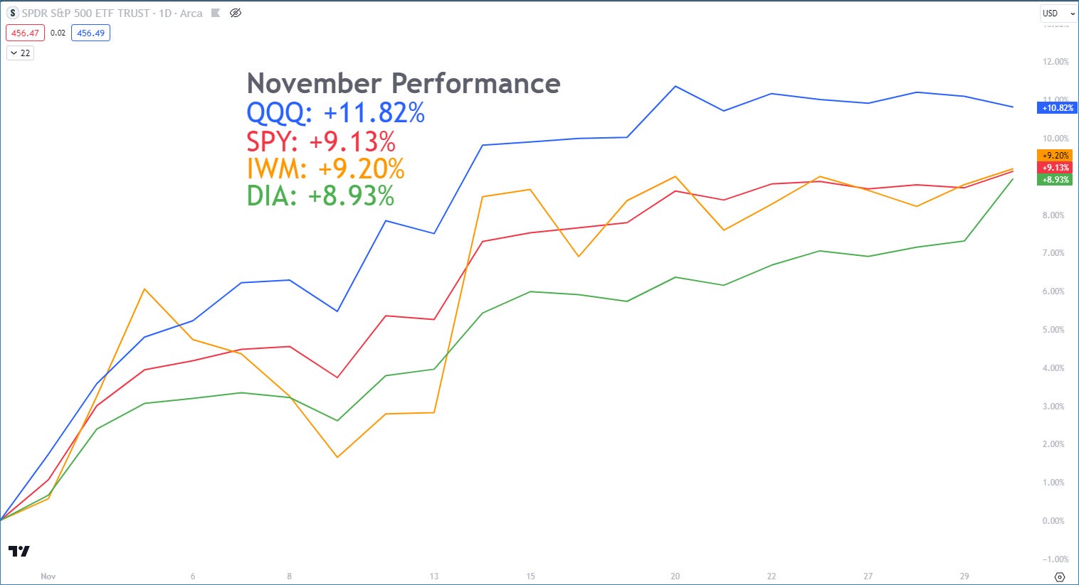 November was a gangbusters month for market performance! The odds of December beating November are slim to none! So be sure not to anchor on this pace of increase.