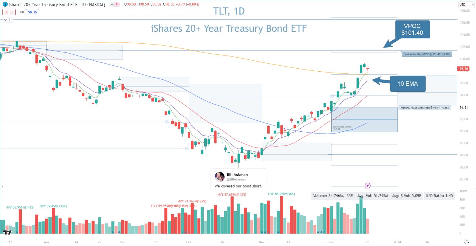 The TLT is going through a much needed pullback/consolidation. Since this uptrend began, buyers have stepped in at every retest of the 10-day EMA. If you are looking to jump aboard this trend for a trade up to the $101.40 VPOC, look for a retest of the 10-day EMA 👇
