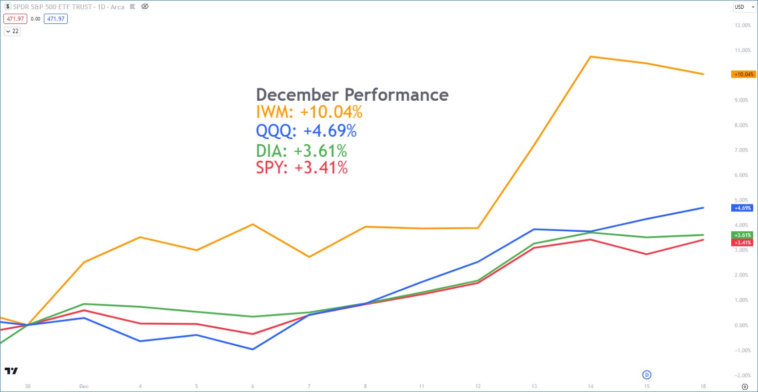 The IWM small caps are up a whopping 10.04% for December. Let that sink in…👇