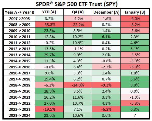 We just completed an extensive analysis of each S&P 500 December-to-January calendar year transition since 2007, and the results were conclusive regarding what we should expect in January 2024!