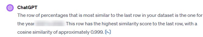 Long story short, we crunched the data, retrieved all of the charts, and fed ChatGPT the following table: