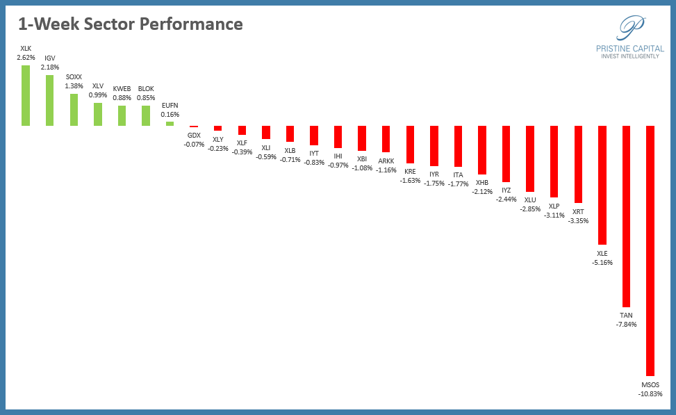 On the 1-week timeframe, XLK Technology, IGV Software, and SOXX Semiconductors led the market action last week. These are the same groups that are leading YTD! In the 4th quarter of the year, investment managers often feel pressured to chase what has worked, as it is always good to show clients that you participated in the strongest groups. I expect that this year will be no different!