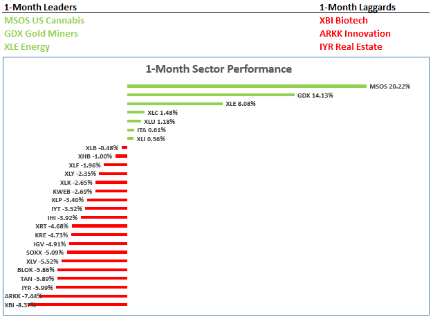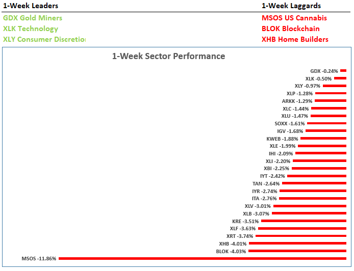 GDX gold miners and XLK were relative safe havens in an absolute sea of red last week 👇