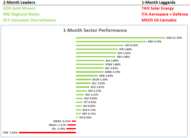 KRE regional banks gaining steam on the 1-Month timeframe. Curious to see how these names behave throughout earnings season👇