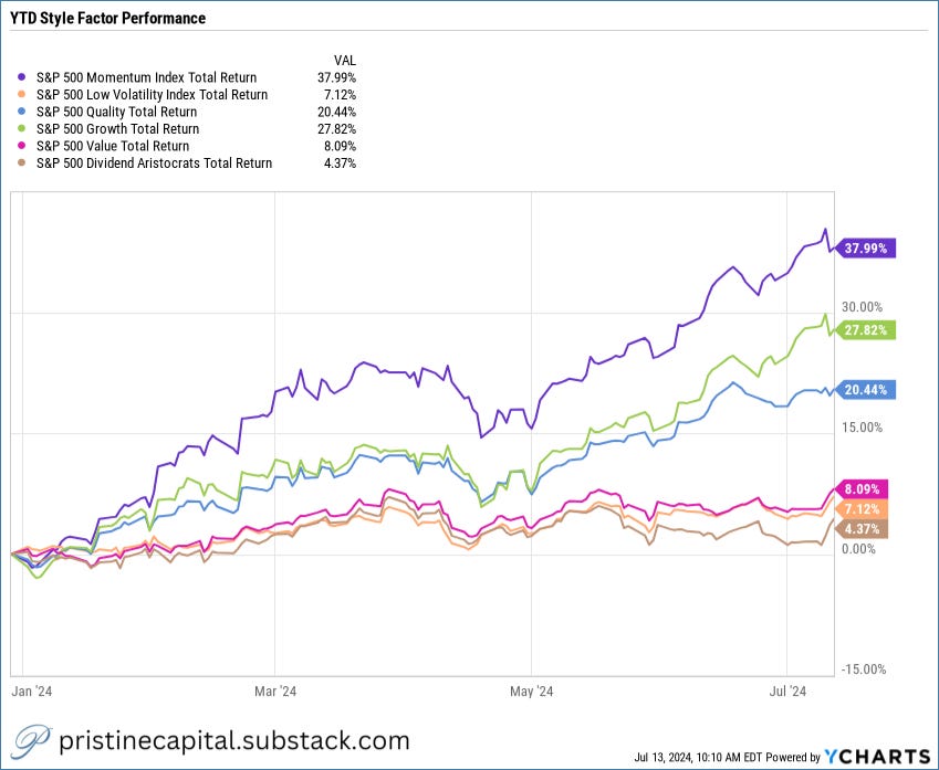 Finally a pullback in the momentum style factor and an advance in the value style factor👇