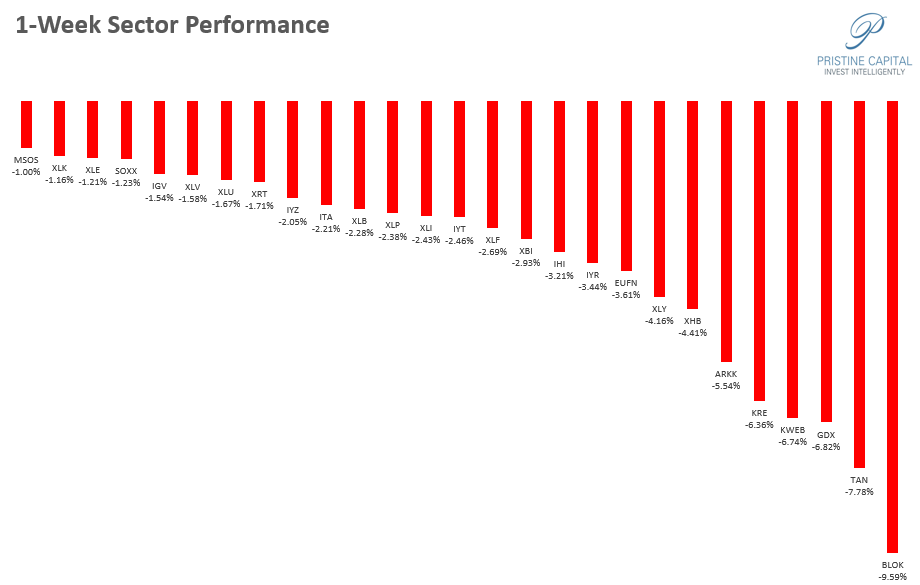 On the 1-week timeframe, the dispersion trade failed! This is the first time in a while that we’ve seen every single group close in negative territory, and it speaks to how weak the market is.