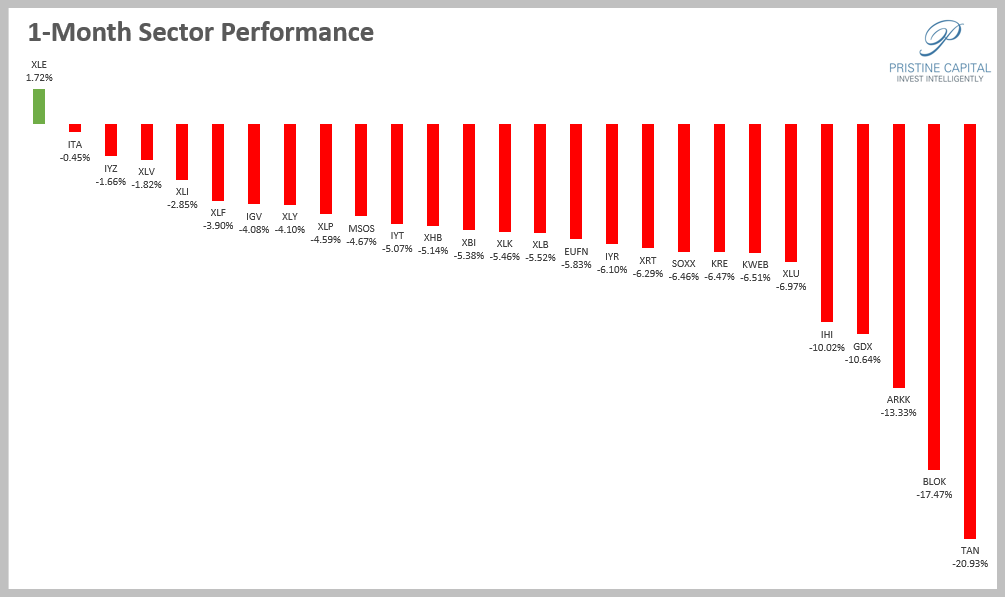 On the 1-month timeframe, XLE energy stocks are the only group with positive performance!