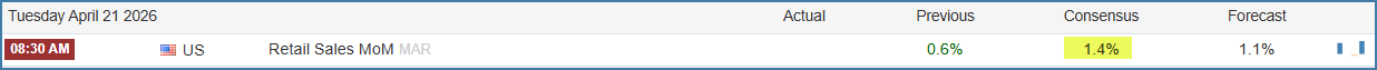 March Retail sales data incoming Tues → Consensus +1.4% MoM👇