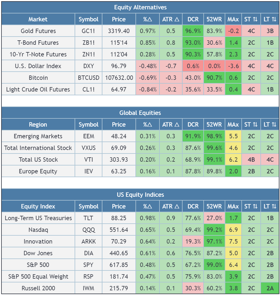TLT long-term treasuries led the session & EEM Emerging Market equities outperformed VTI US equities👇