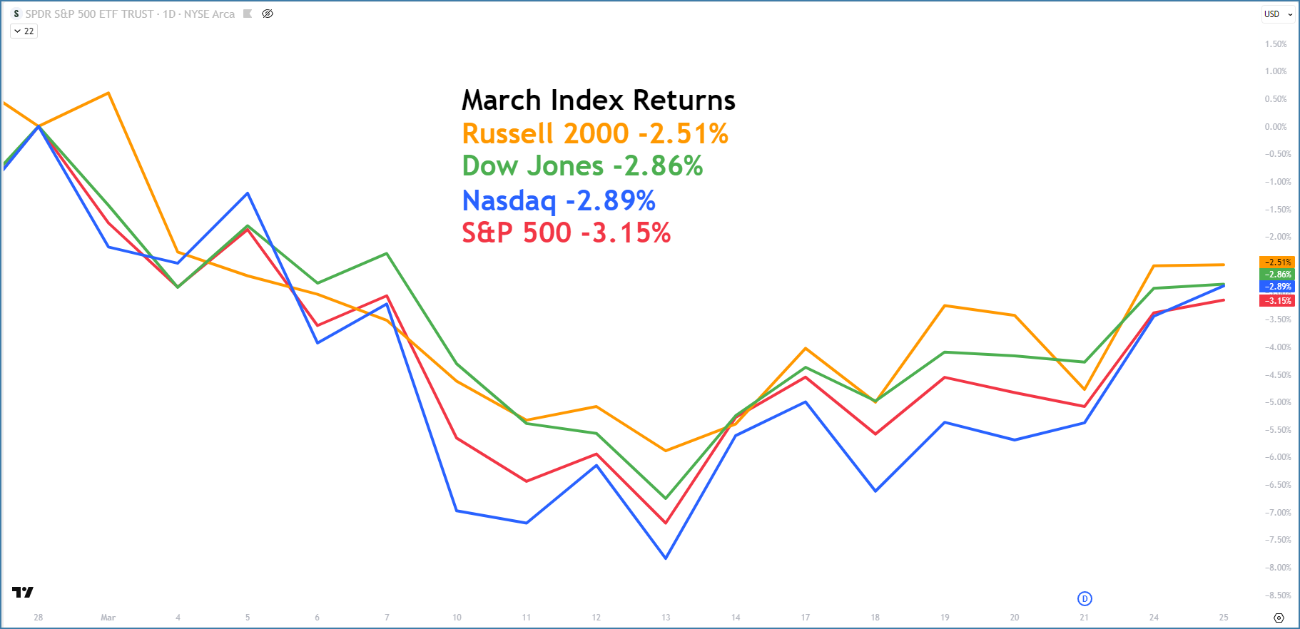 There are four more trading sessions left in Q1! With the headline indices all DOWN single digits quarter to date, do investment managers put their pedal to the metal in one final blaze of glory? Or do they finally cut their losses and reset for Q2.