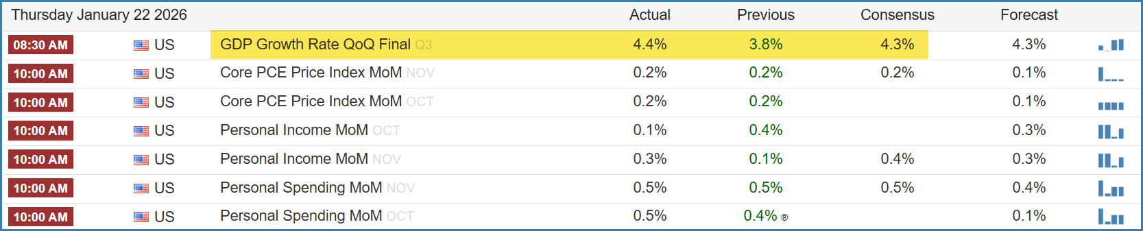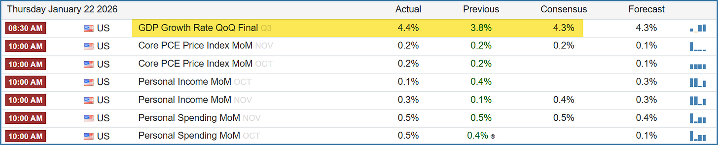 Strong GDP data was released this morning. No big econ datapoints for Friday👇