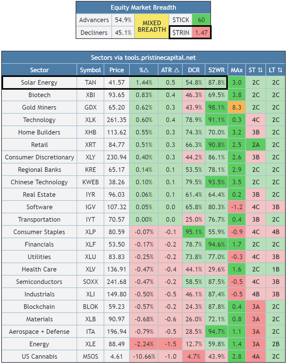 TAN Solar outperformed in a tape of MIXED BREADTH👇