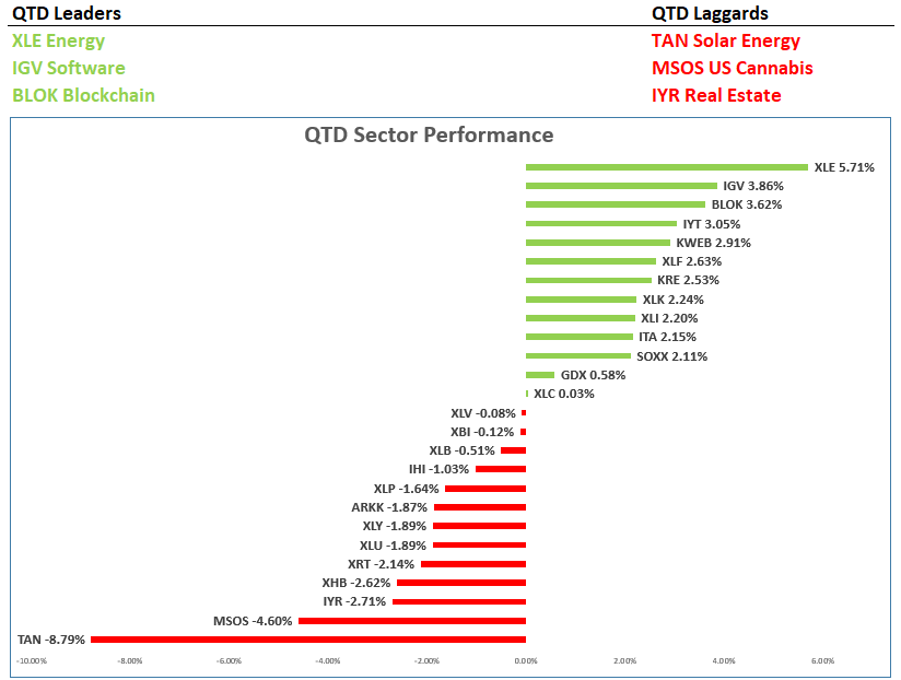 XLE energy is the top performer in Q4, which could factor into the inflation outlook. Energy leading alongside IGV software and BLOK blockchain is an uncommon configuration, creating a strange trading environment 👇