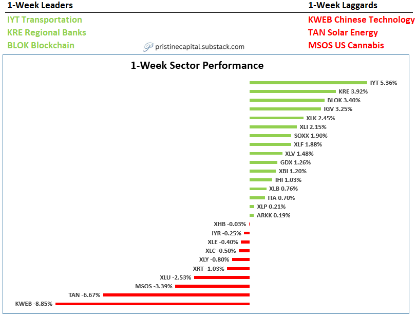 Transports ripped last week, helped in large part by the UBER breakout👇