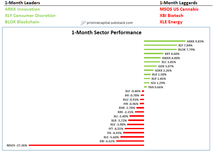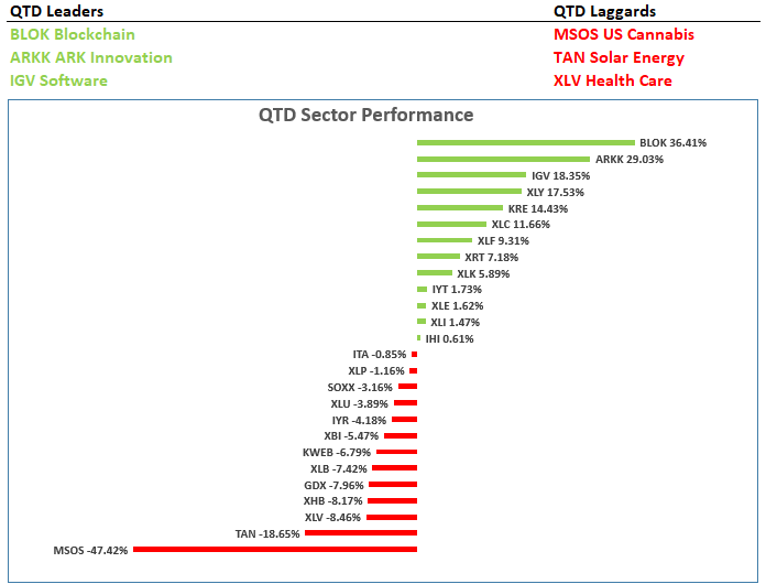 BLOK blockchain assets, ARKK innovation, and IGV software are outperforming in Q4 👇