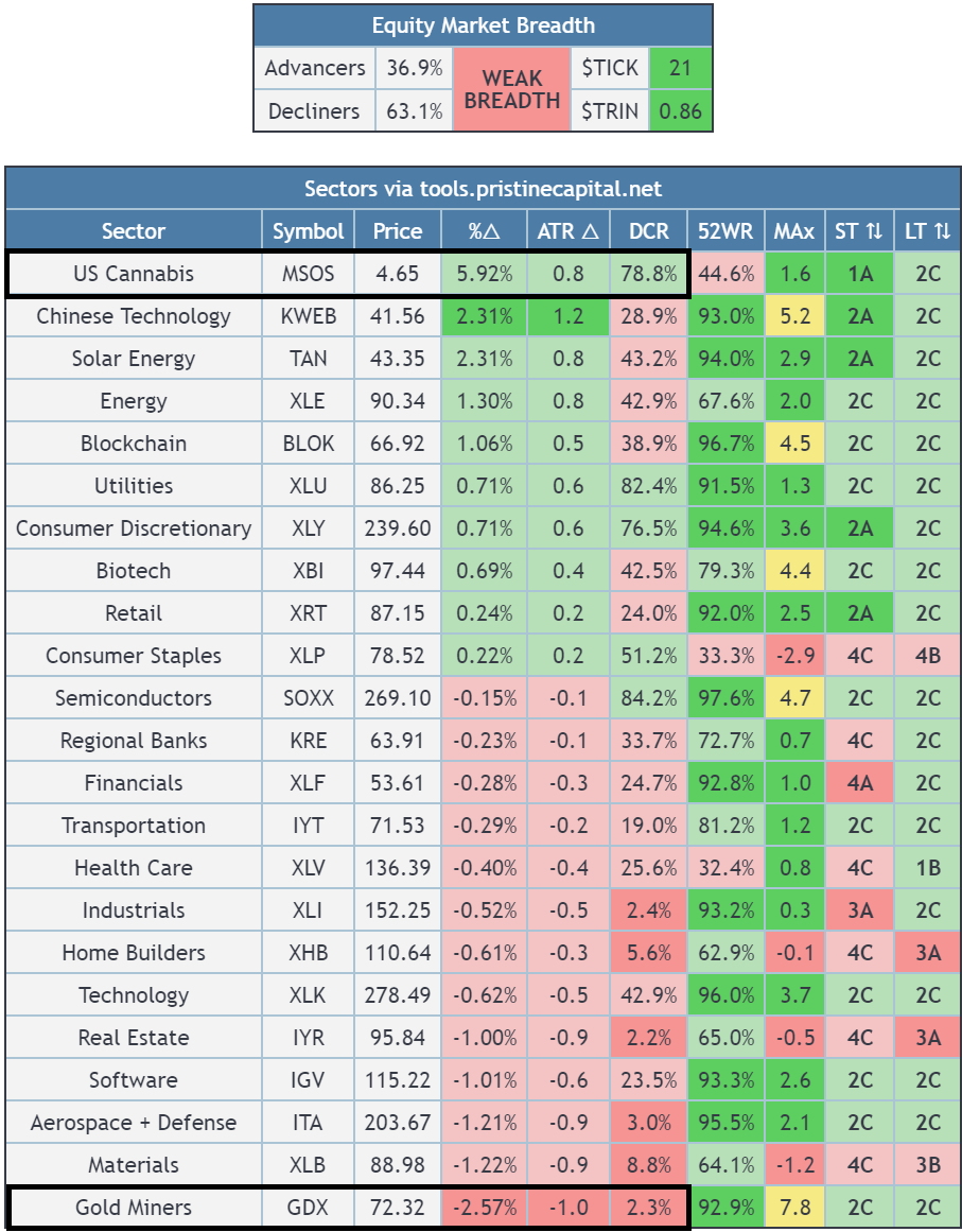 MSOS cannabis & KWEB China outperformed in a tape of WEAK BREADTH🟡