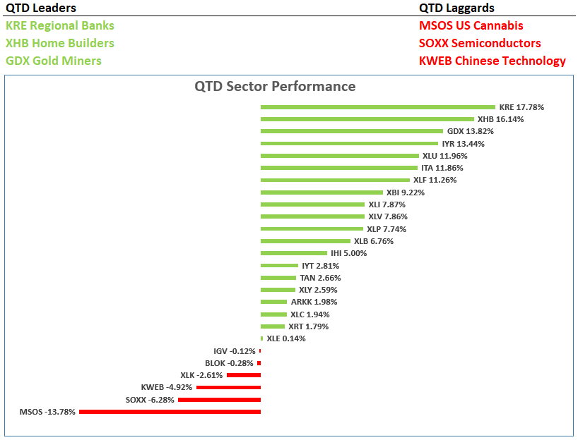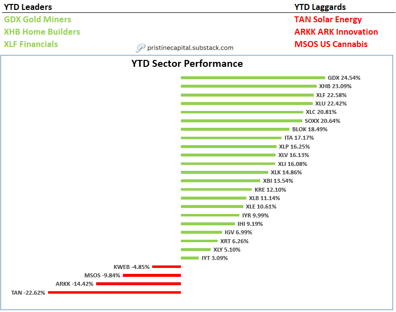 GDX Gold Miners, XHB home builders, and XLF financials are the YTD leaders. When we look back on 2024, we will remember that this was the year to position in groups that benefit from LOWER interest rates 👇