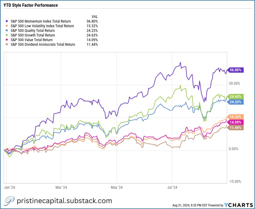 New YTD highs for low volatility, value, and dividend style factors