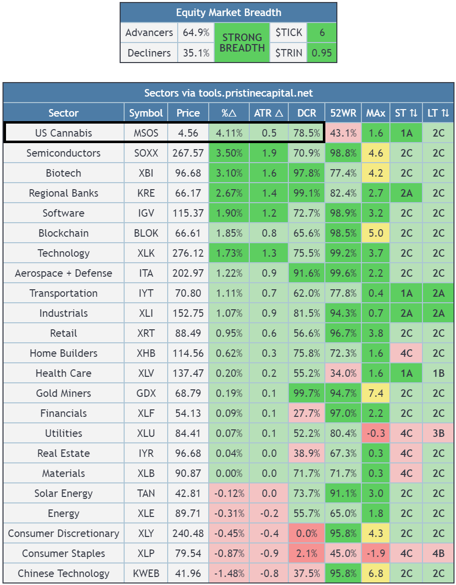 MSOS Cannabis stocks outperformed in a tape of STRONG BREADTH🟢