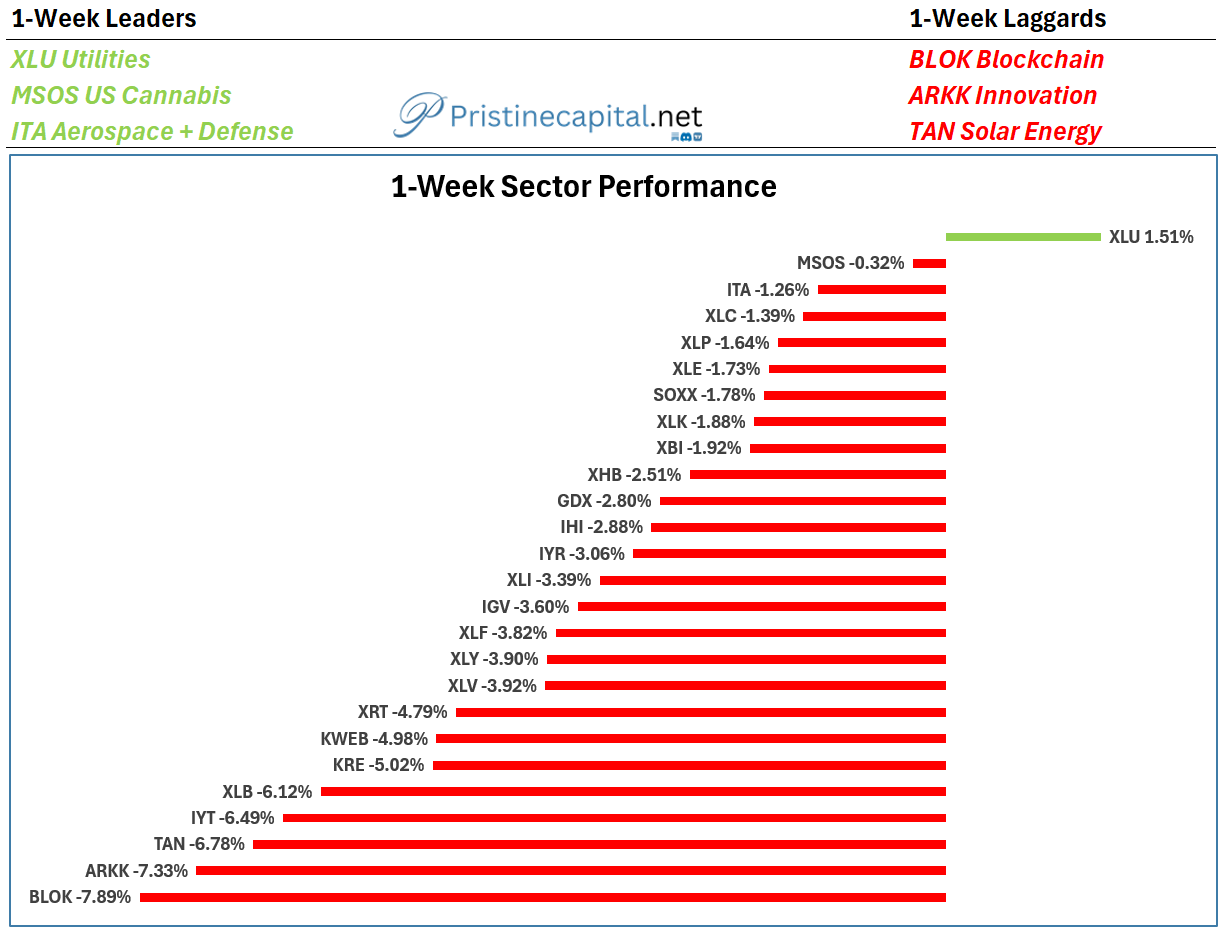 XLU utilities led in a risk-off week of trading👇