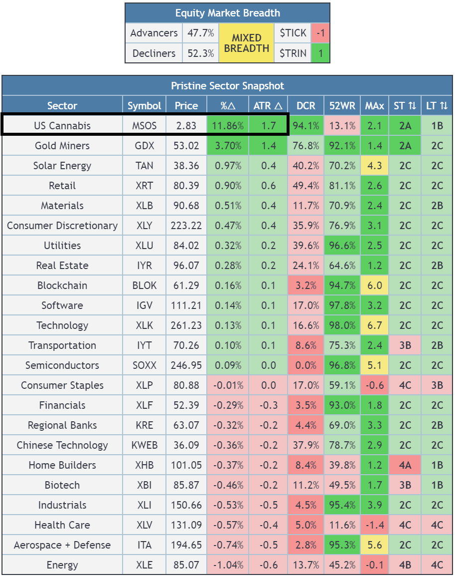 MSOS led the market in a backdrop of MIXED BREADTH.