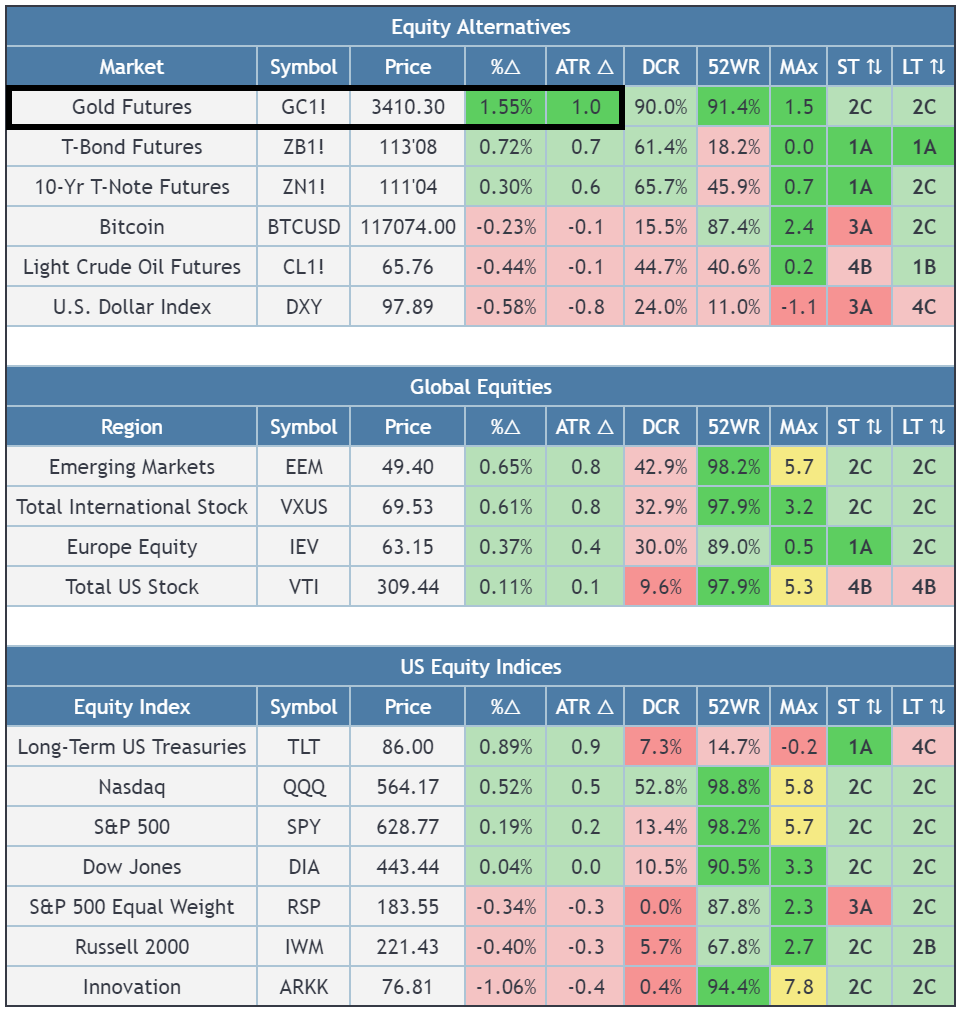 Gold and bonds unusual relative strength. EEM & VXUS international stocks outperformed VTI domestic 👇