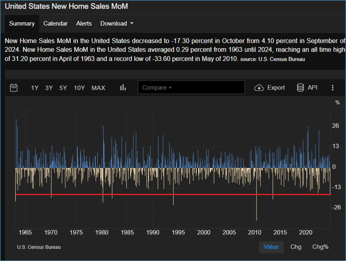 US New home sales fell 17.3% YoY in October. High mortgage rates are a killer 👇