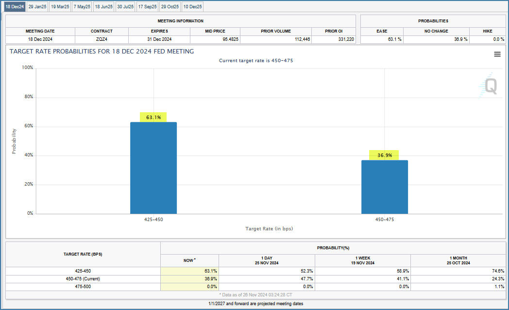 There is currently a 63.1% chance that the fed will cut rates at the 12/18 meeting 👇