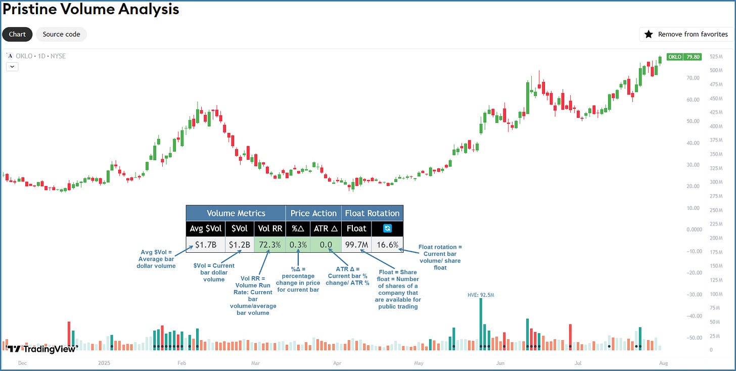 Key Features: Automatically flags “Highest Volume Ever” (HVE), calculates daily volume run rates, and detects float rotation anomalies in real-time.