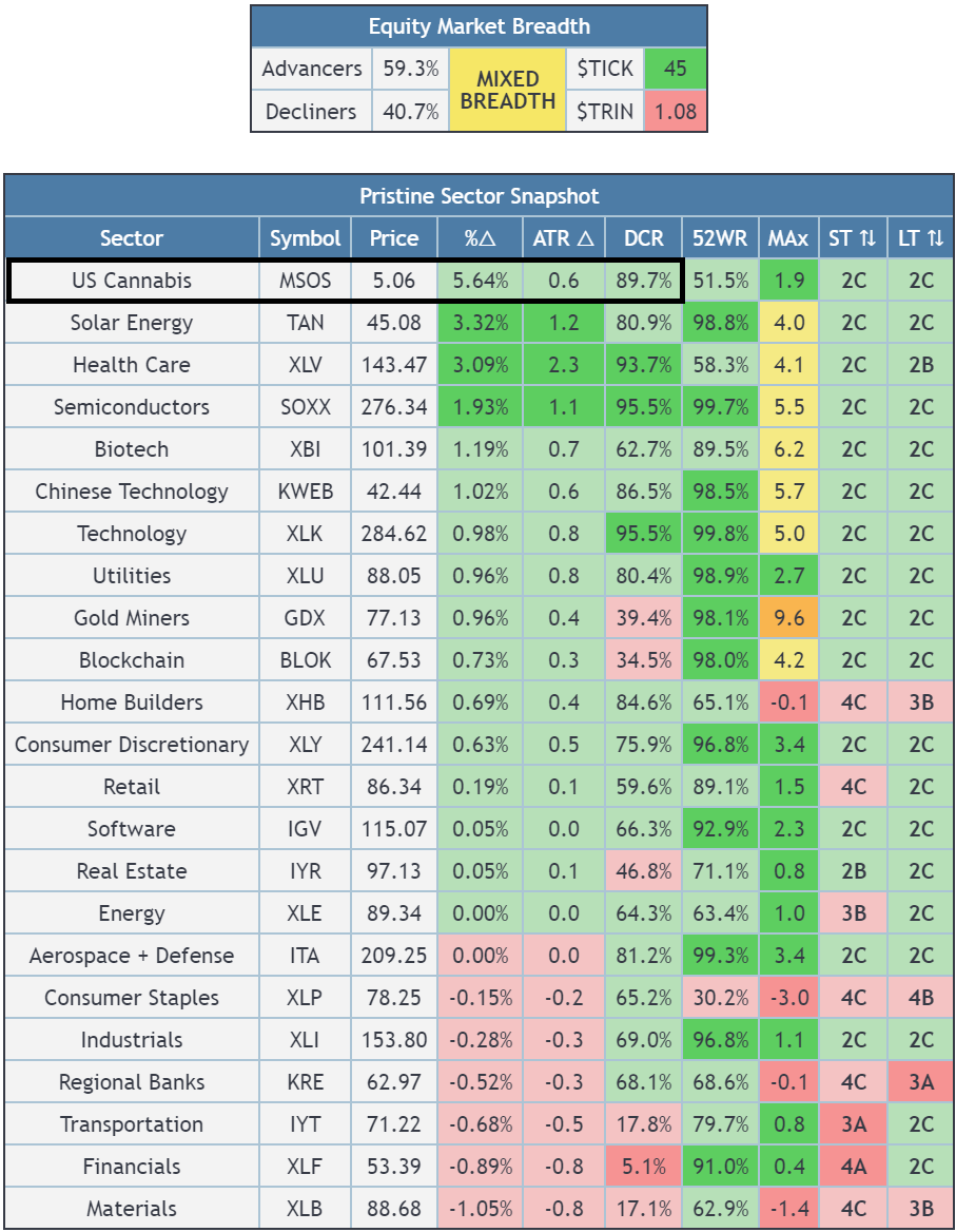 MSOS cannabis led the market in a tape of MIXED BREADTH 🟡