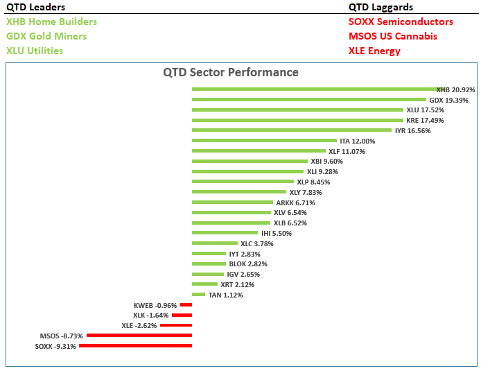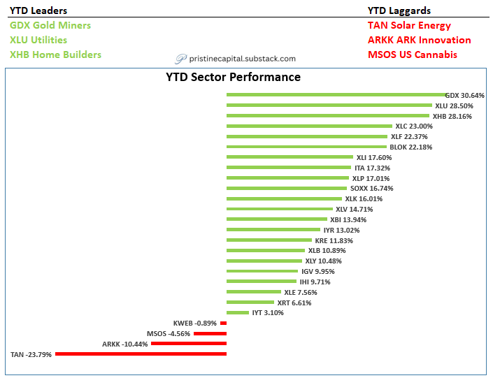 GDX Gold Miners, XLU utilities, and XHB homebuilders are the YTD leaders. When we look back on 2024, we will remember that this was the year to position in groups that benefit from LOWER interest rates 👇