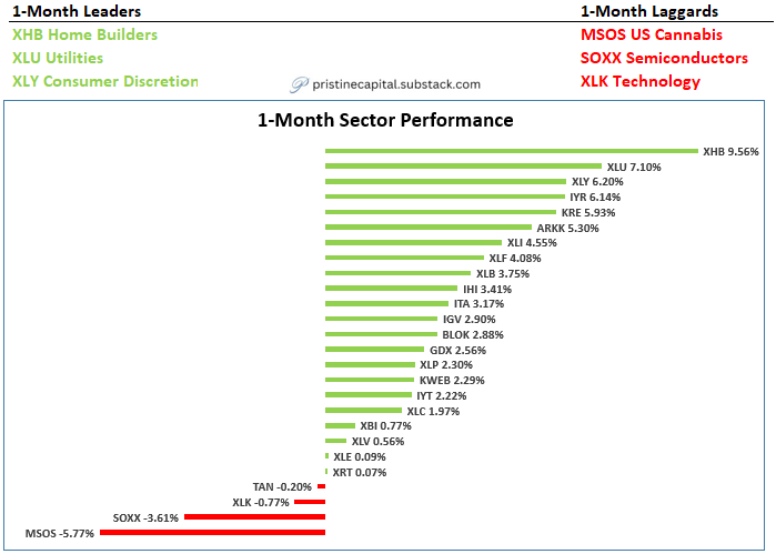 Massive reallocation to XHB homebuilders on the 1-month timeframe as investors apparently prepare for lower interest rates👇