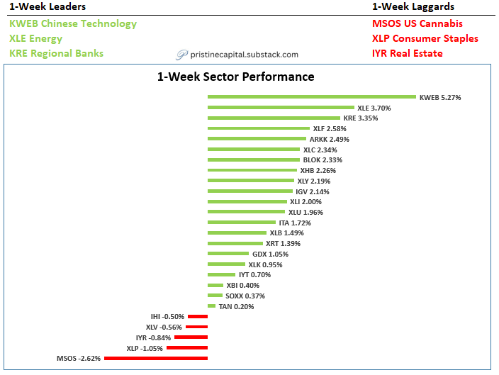 KWEB China names came alive on the 1-week timeframe. We’ve been overweight this group via long positions in BABA 👇
