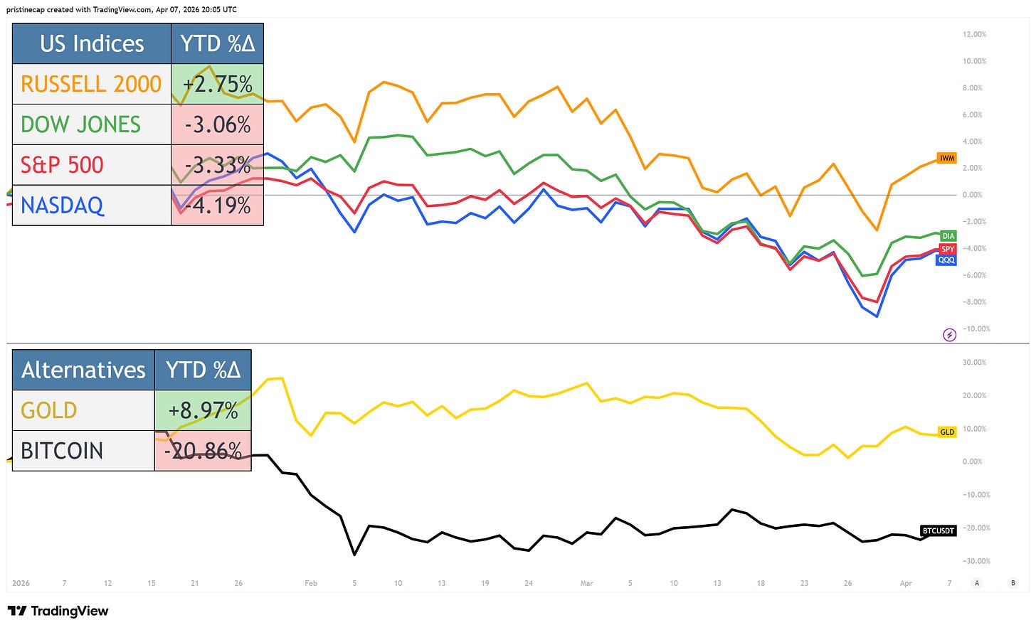 Russell 2000 only index in positive territory as Q2 kicks off 👇