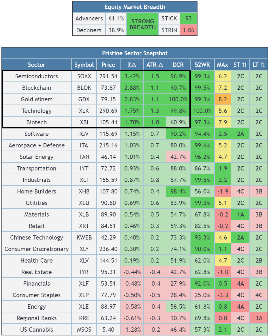 SOXX semis & BLOK blockchain led in a tape of STRONG BREADTH 🟢