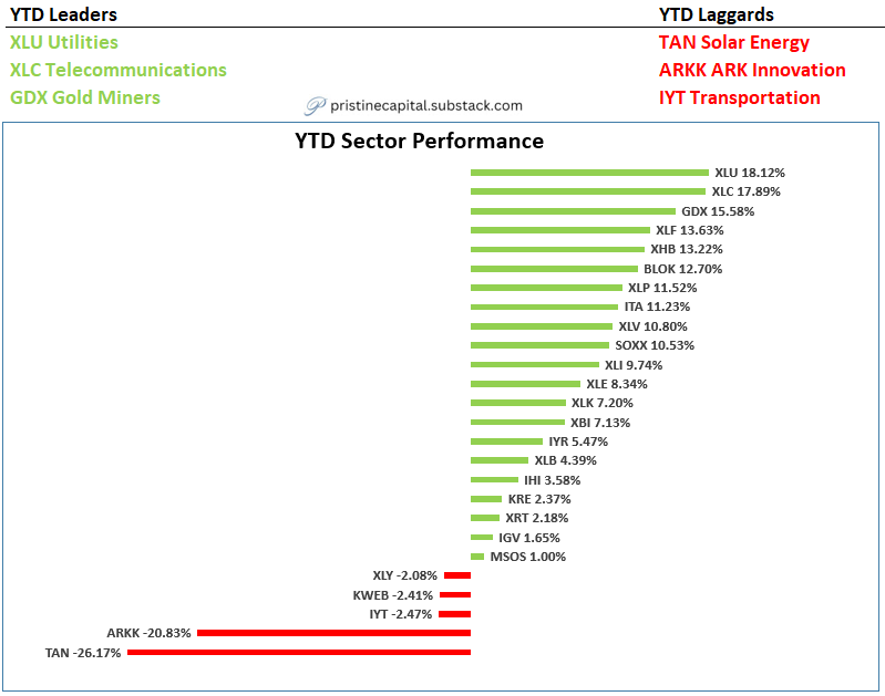YTD leadership groups XLU, XLC, and GDX are telling us that the market believes a recession is on the horizon👇