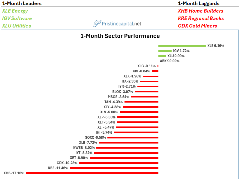 The rate-sensitive XHB home-builders are the hardest hit group. Higher energy prices are driving higher interest rates, and higher interest rates are a negative catalyst for this group. A tactical trade in the XHB Home Builders could be considered if/when Operation Epic Fury concludes 👇