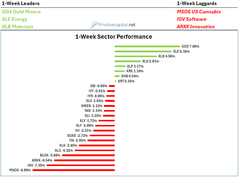 Hard assets like GDX Gold Miners, XLE Energy, and XLB Materials outperformed everything else last week👇