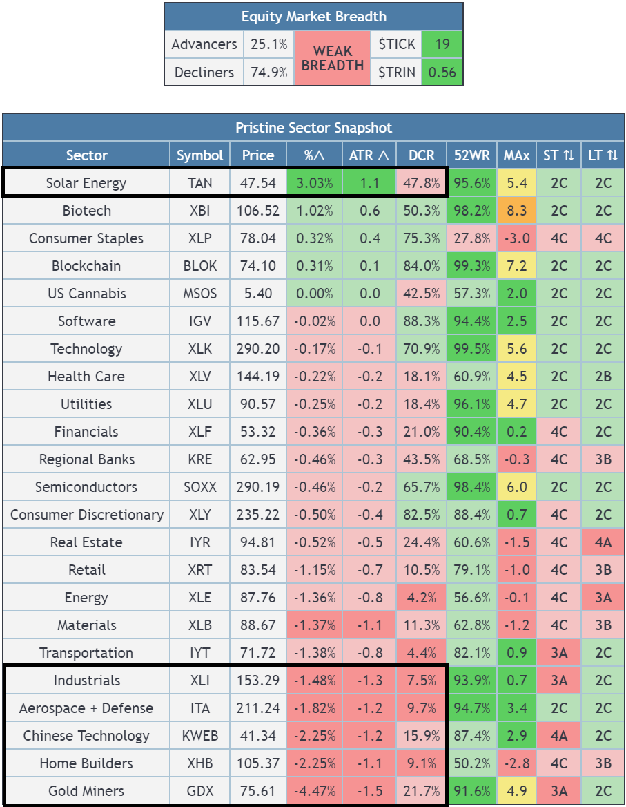 TAN relative strength & Significant weakness in GDX gold miners🔴