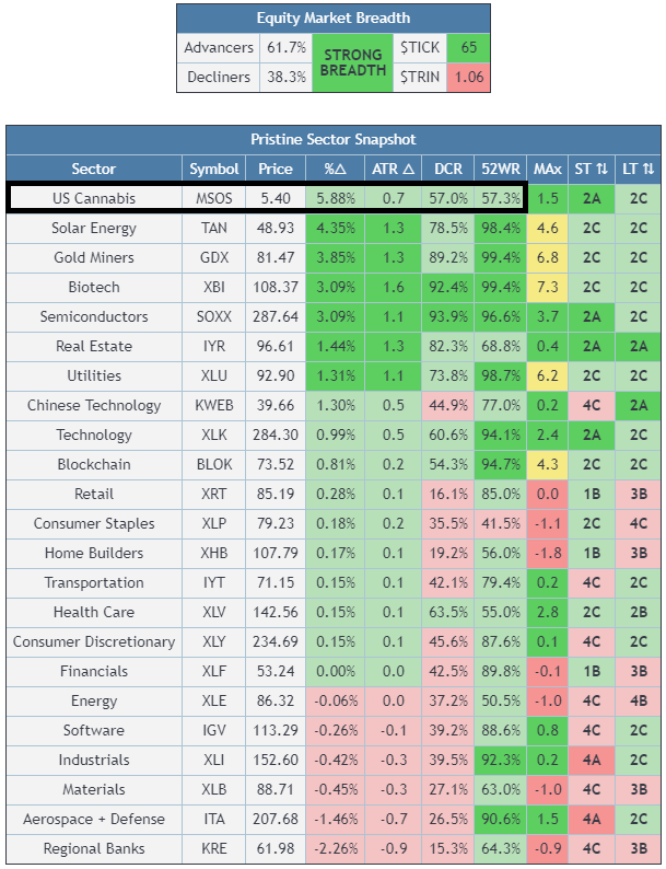 MSOS Cannabis, TAN Solar led in a tape of STRONG BREADTH🟢