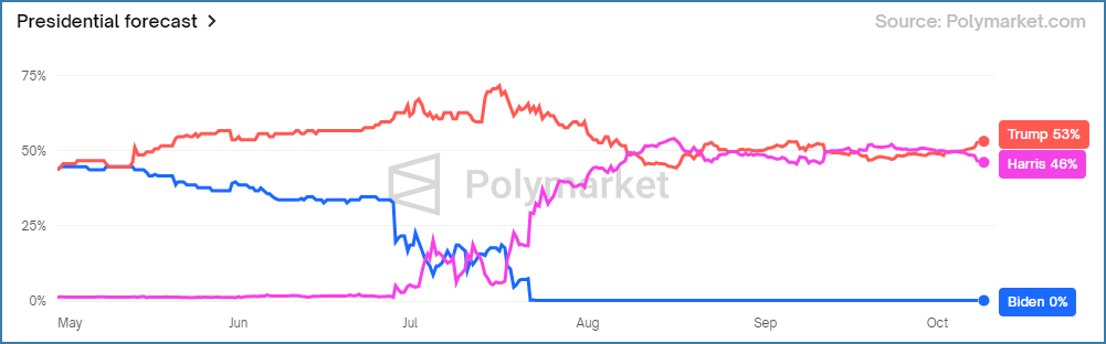 Trump is now favored to beat Harris in the 2024 presidential election on 11/5 👇